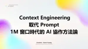 Context Engineering 取代 Prompt Engineering — 1M 窗口時代的 AI 協作方法論2026.03.20→04AI Agent 應用
